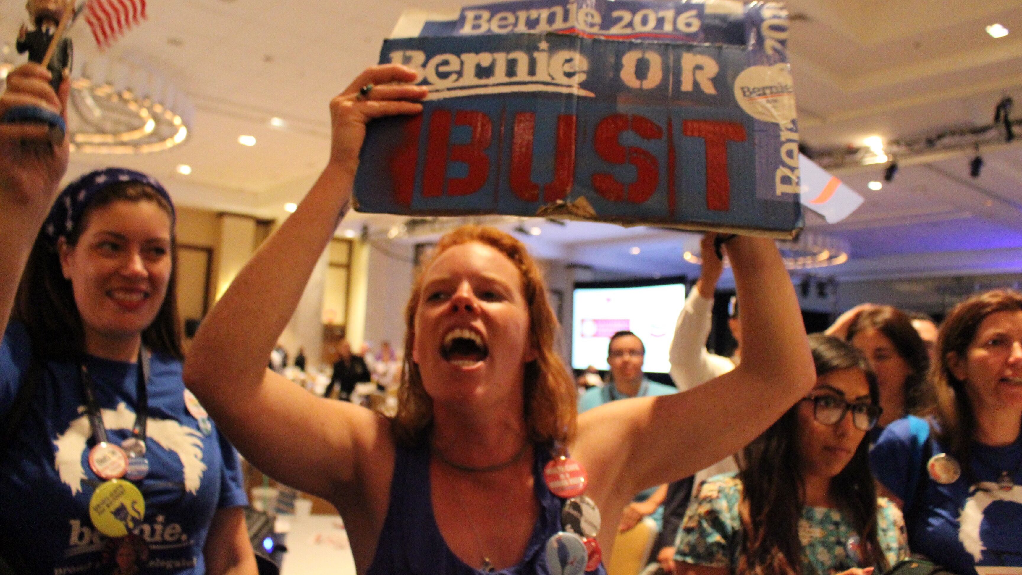 The call for party unity seemed to be abandoned as many stood and began waving "Bernie or Bust" signs and banners declaring their support. Shortly after, Padilla was forced to pause and asked for quiet several times.