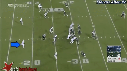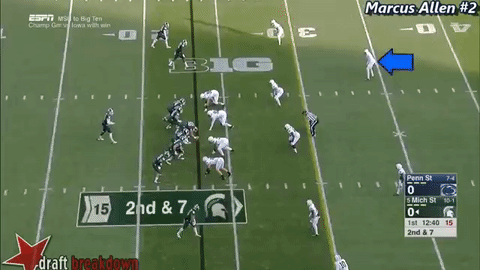 Penn State plays a lot of Cover-2, which means "corner" routes to the outside is often where to attack. Allen is a tackling machine, but he can get beat in the passing game to the outside.