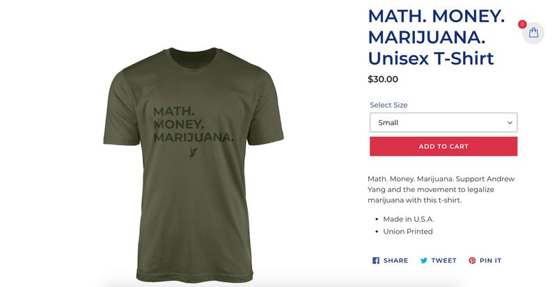 Eddie Sun, a freshman studying journalism, said he feels Yang uses this ‘Asianness’ as a marketing trait, rather than something he embraces. On Yang’s campaign website, hats sporting the word ‘MATH’ can be purchased, along with a shirt with the phrase, ‘MATH. MONEY. MARIJUANA.’
