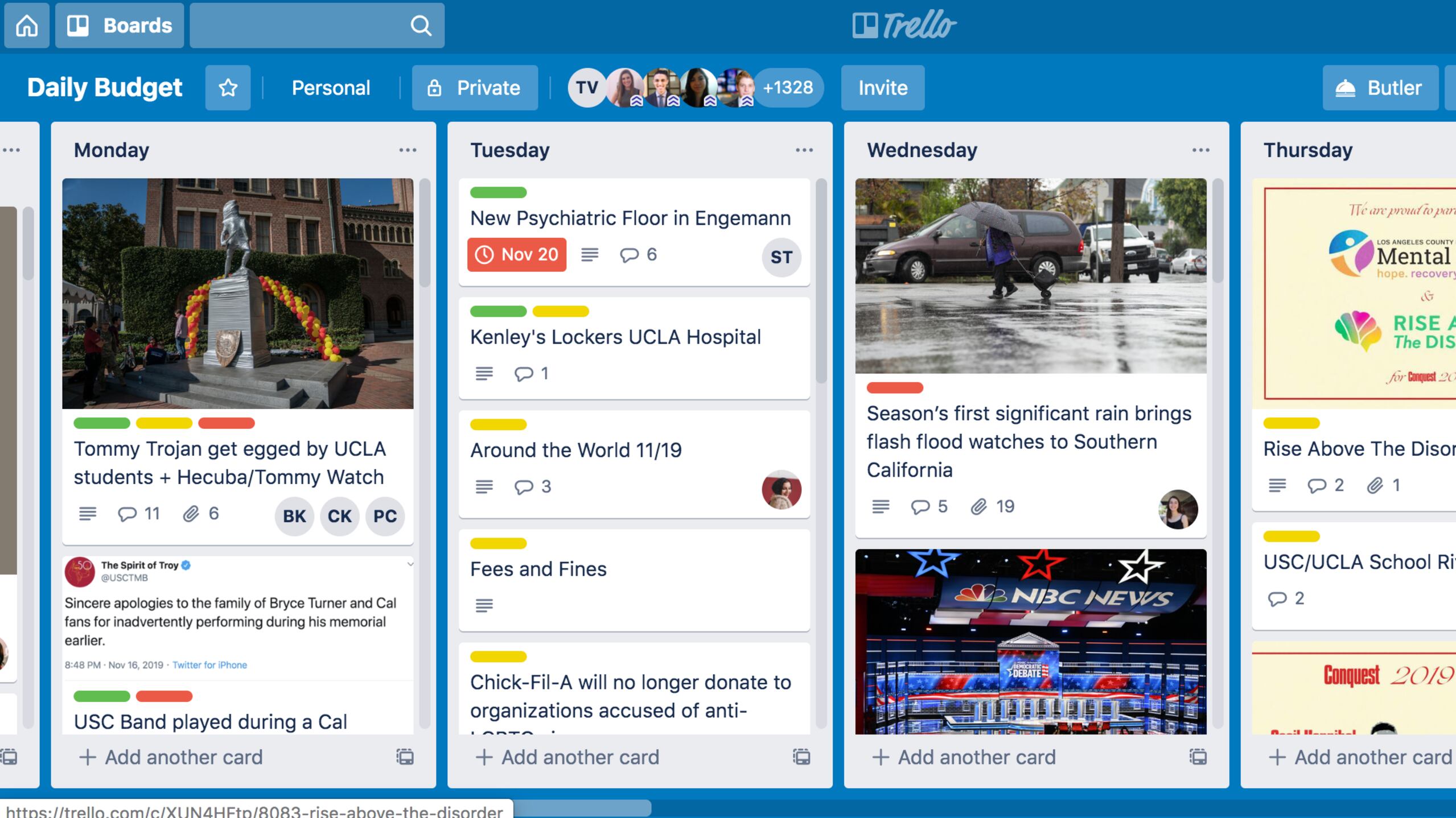 Even though I was the teammate producer, my inner reporter never dies. I developed a few stories this week, even though I usually do that when I’m lead producer. I tracked social media a lot more, and found the Facebook group about the USC parents who created a group for mental health resources called, “Counseling Connection Corner.” I broke down the elements we would need and assigned it as soon as Diego agreed. In the morning, I also made sure to use my social media skills to pitch Transgender Remembrance Day as a story. Today social media definitely guided my news-gathering process, which was an impactful change.