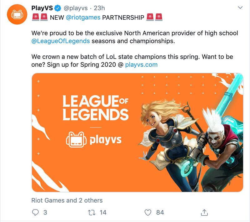 So far it’s been a bunch of kids who had some extra time on weekends. But competitive esports are starting to trickle down to high schools across America with a little help from PlayVS (pronounced Play Versus), who as of yesterday, officially partnered with Riot Games to expand the League of Legends scholastic scene.