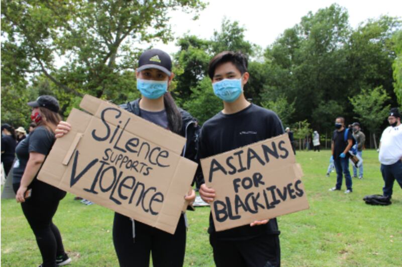 Cassandra Hsiao, a rising college senior, and her brother Jeremy, a high school graduate, showed their support with signs that read “Asians for Black Lives” and “Silence Supports Violence.”