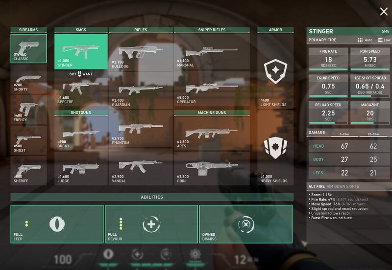 This partially addresses concerns from prominent pro players such as 100Thieves’ “nitr0” and C9′s “meL” who have argued that the Stinger and the Frenzy, an automatic pistol you can buy for 400 credits, are too reliant on RNG and also focus too much on the “run-and-gun” mentality.