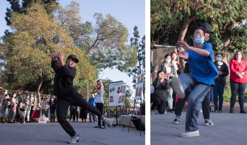 William and I really wanted to be inspired by Elizabeth’s music. Our plan was to feel present in the moment [and]; influenced by the people around us. The core of the vigil was to reflect on the terrible injustices facing the Asian community. Due to this, we came in with no choreography. Instead, we developed the movement in the moment and planned to come together at the end!