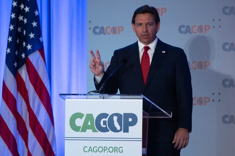 As GOP chairwoman Patterson introduced DeSantis, the ballroom erupted into applause. DeSantis launched into his speech reminiscing on fond memories of his time in California.