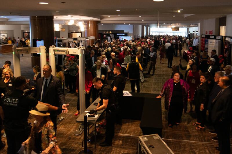 11:53 a.m. Conference attendees continue to file in ahead of Trump’s keynote