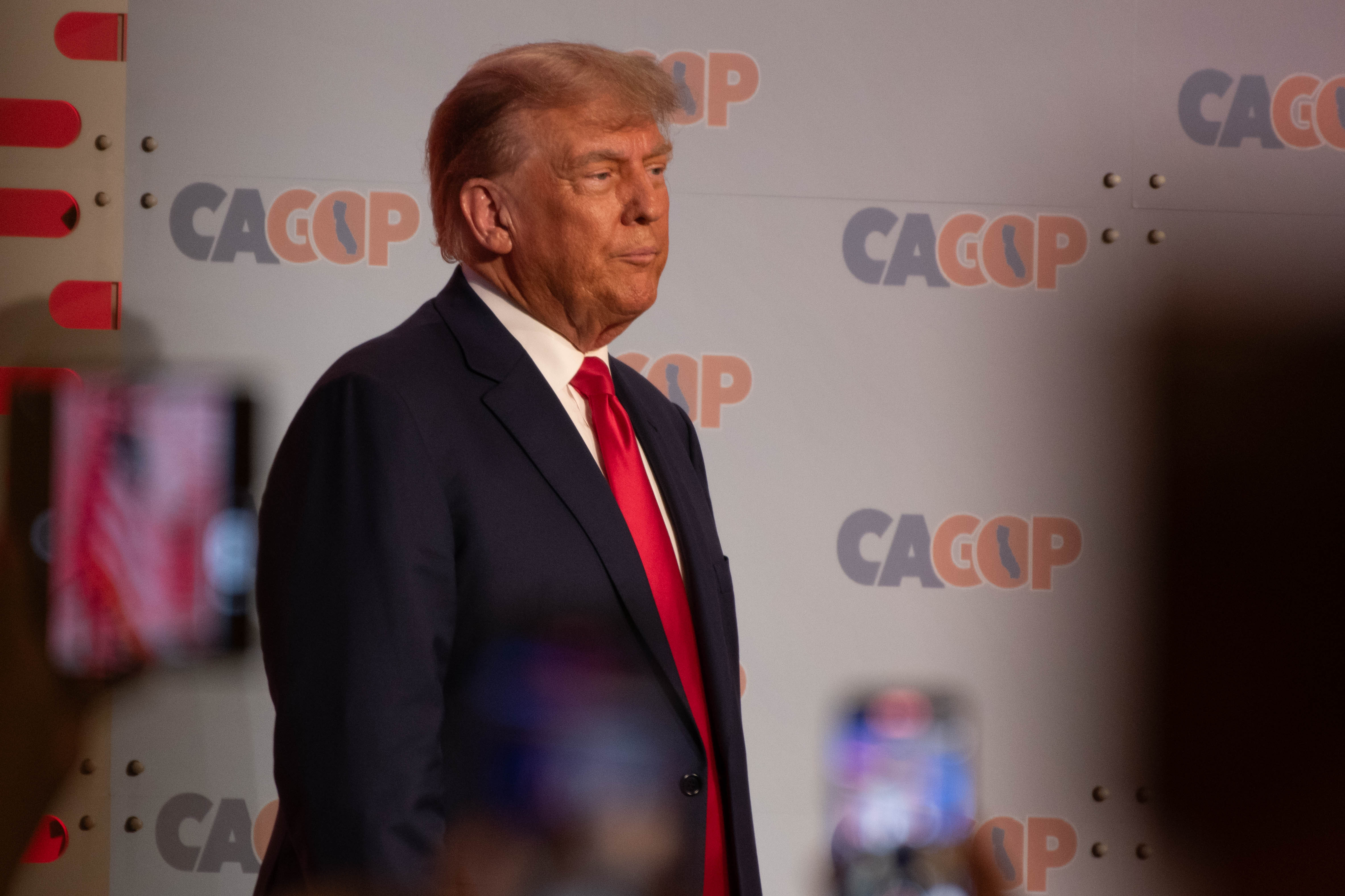 ANAHEIM, Calif. — After his second absence from the debate stage this primary season, Trump is making an appearance at the California Republican Convention in Anaheim.